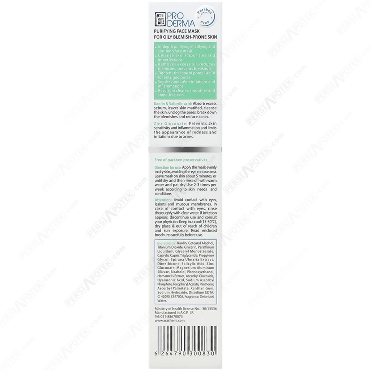 لیست ترکیبات ماسک پاکسازی پوست پرودرما: