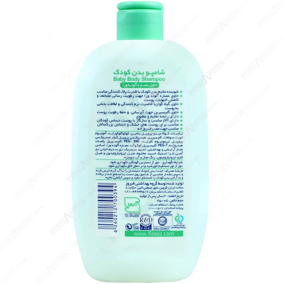مشخصات فنی فیروز شامپو بدن کودک حاوی عصاره آلوئه ورا