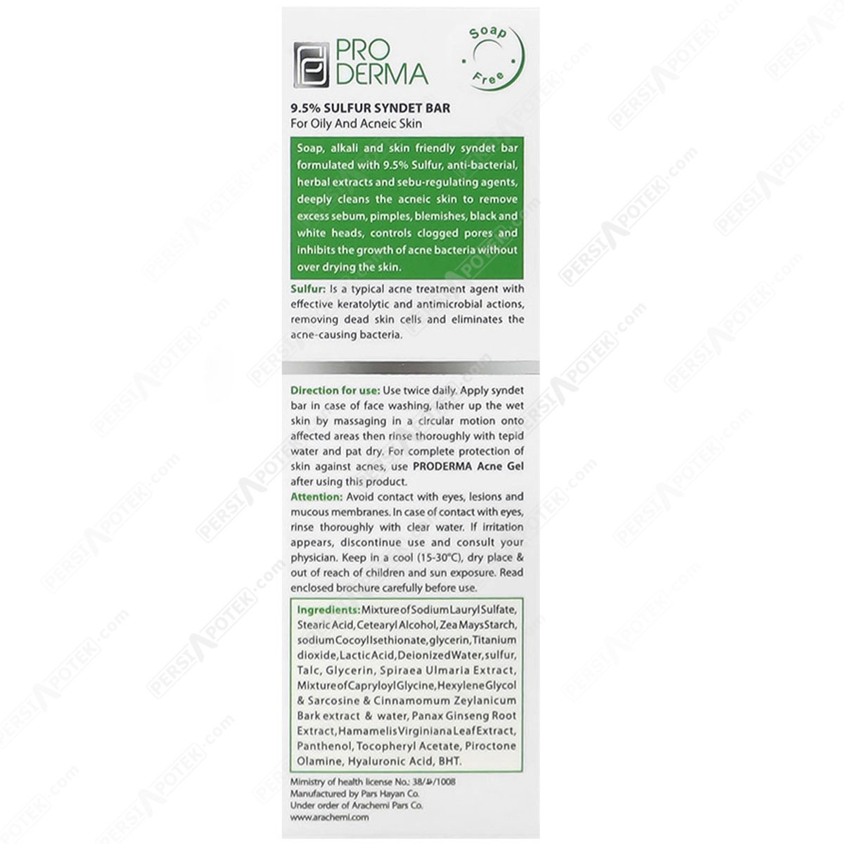 مشخصات فنی پرودرما پن حاوی 9.5درصد گوگرد آکنه وست