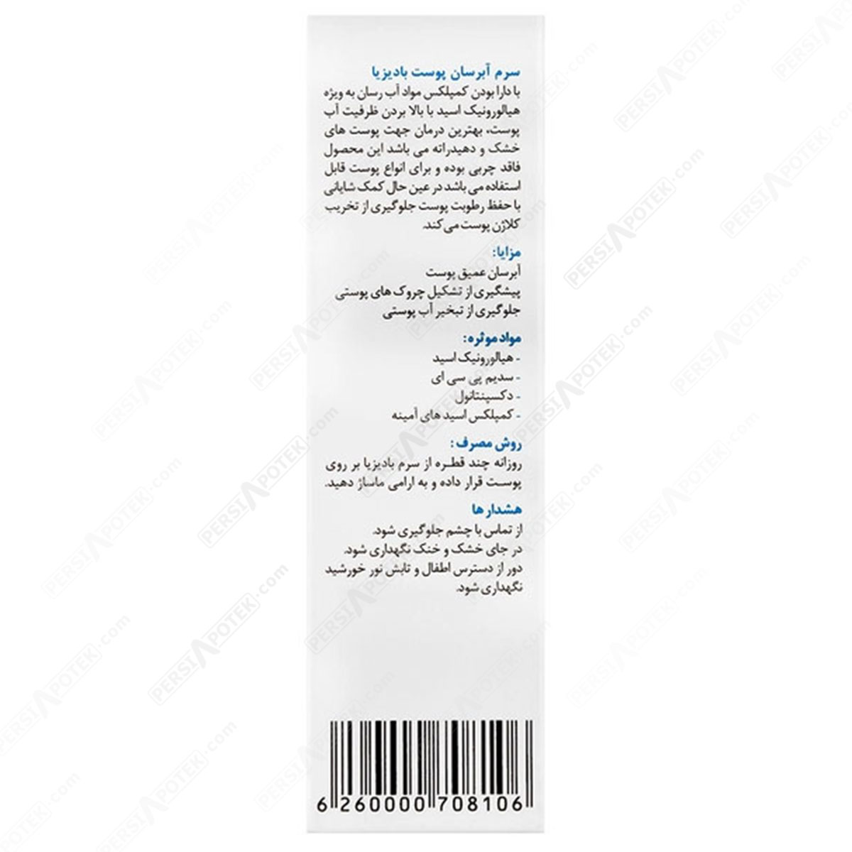 مشخصات فنی بادیزیا سرم آبرسان پوست