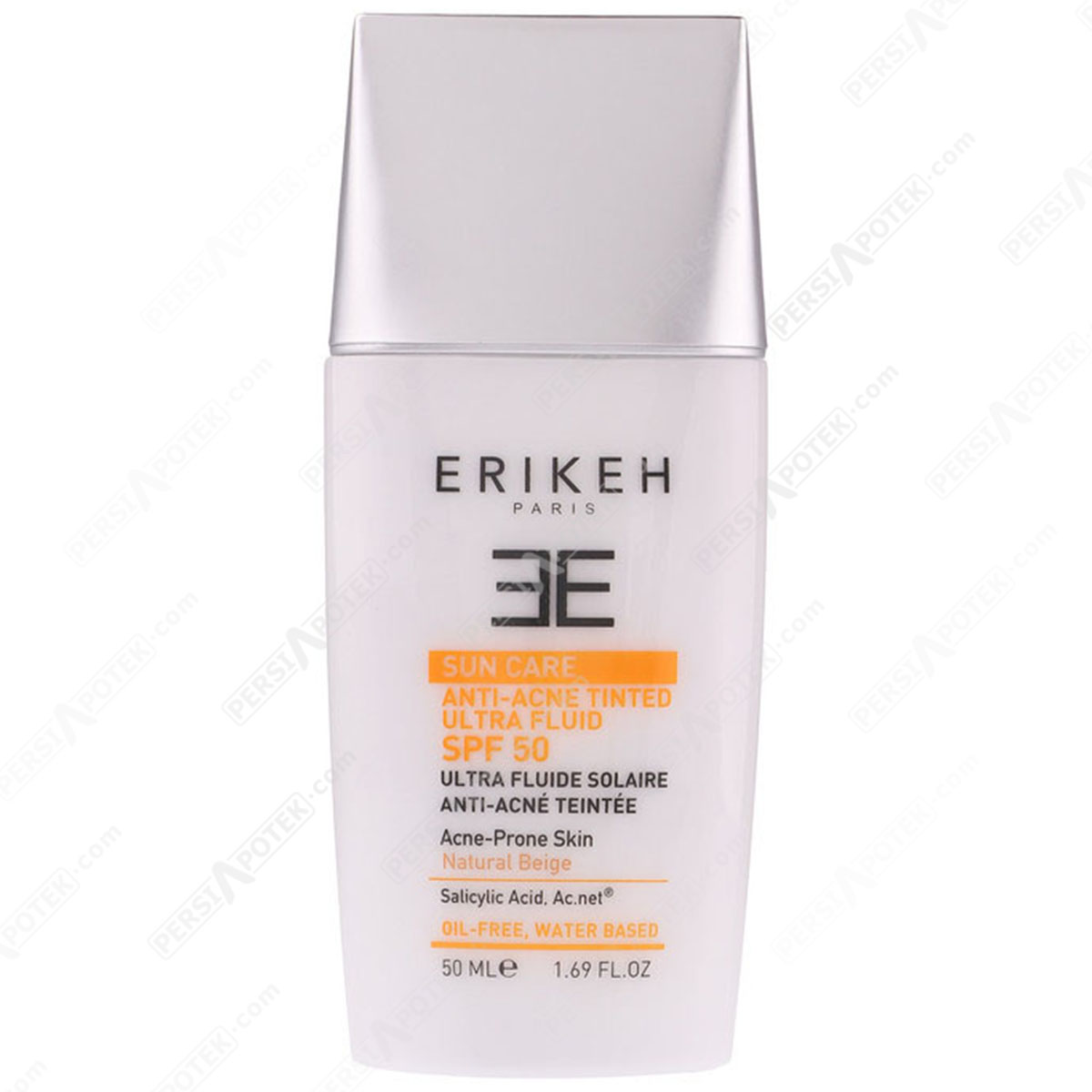 پوست ما روزانه در معرض آسیب ناشی از اشعه های UVA ,UVB و IR نور خورشید است که به کمک پوشیدن لباس های مناسب، کلاه و همچنین مصرف ضد آفتاب می توان از آن جلوگیری کرد. ضد آفتاب اریکه ضد جوش یکی از محصولاتی است که با داشتن SPF50 ، به میزان قابل توجهی در صورت مصرف صحیح، از پوست محافظت می کند. فلوئید ضد آفتاب و ضد جوش اریکه در حجم 50 میلی لیتر تولید شده و با داشتن بافتی سبک، به راحتی روی پوست پخش می شود. فلوئید ضد آفتاب اریکه به دلیل داشتن ترکیبات لایه بردار، تنظیم کننده ترشح سبوم و مهار کننده رشد باکتری های مولد آکنه، مانع از ایجاد جوش روی پوست نیز می شود.