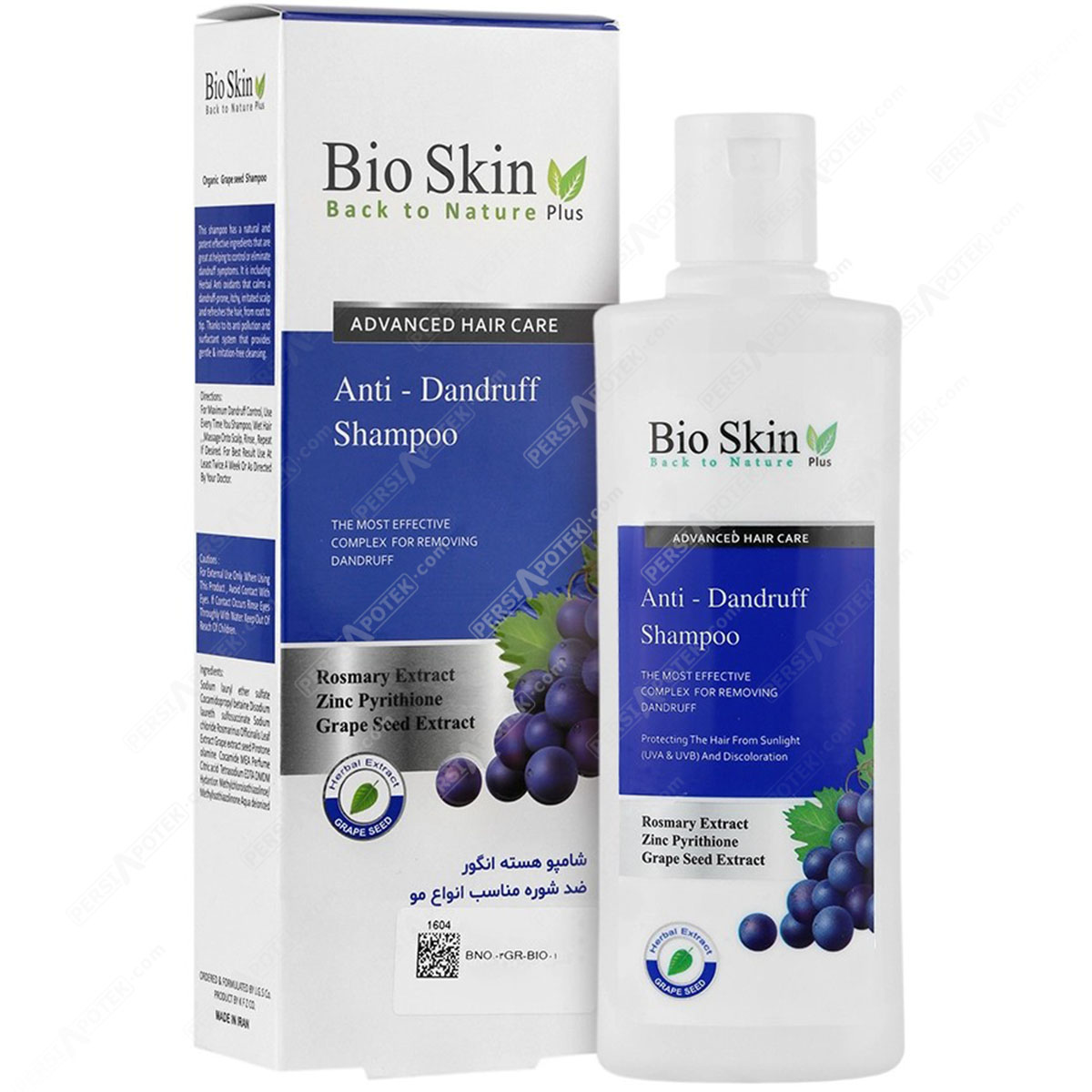 مواد موثره طبیعی و بسیار قوی به کار رفته در شامپو ضد شوره هسته انگور بایو اسکین موجب کنترل شوره موها میشود و با توجه به مواد شوینده موجود در آن پاکیزگی کف سر را به دنبال دارد. آنتیاکسیدانهای گیاهی به کار رفته در شامپو بایو اسکین بر علیه آلایندهها به خوبی عمل نموده و سبب کنترل التهابات احتمالی همراه با درمان و رفع شوره میشود. فرمولاسیون به کار رفته در شامپو ضد شوره مو بایو اسکین مدل هسته انگور بسیار ملایم بوده و بدون ایجاد هیچگونه تحریکی به مهار و کنترل انواع شوره و در نهایت درمان آن کمک میکند.