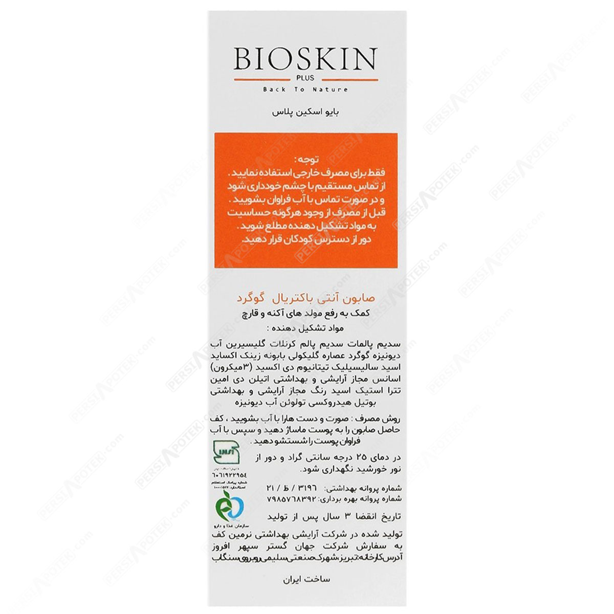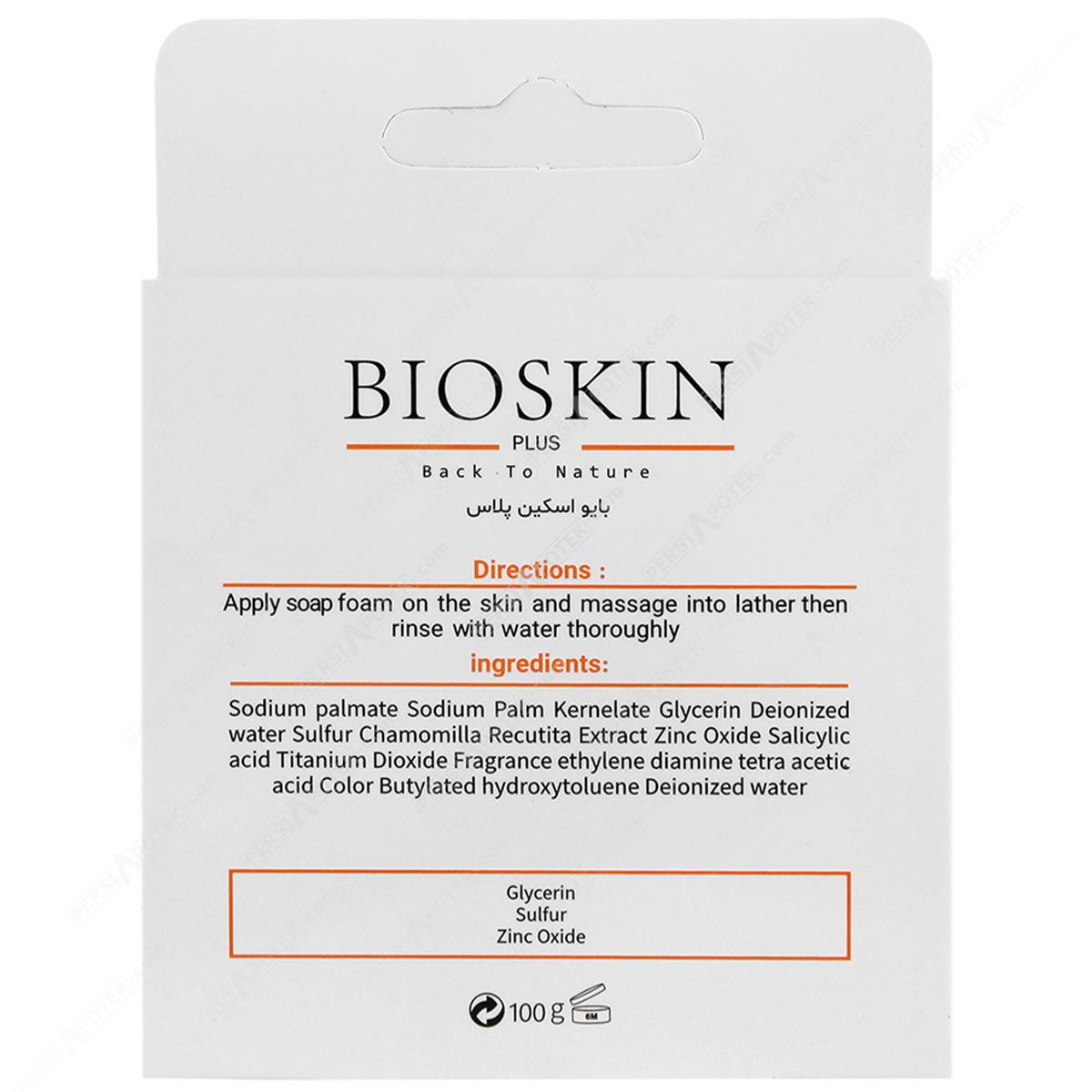 مشخصات فنی بایو اسکین صابون آنتی باکتریال گوگرد