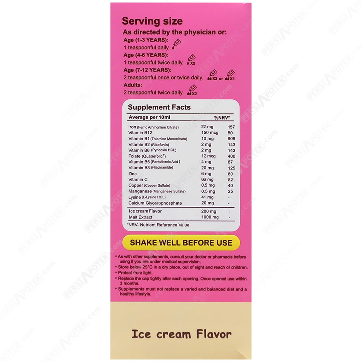 حاوی زینک، آهن مایع و کمپلکس ویتامین B و ویتامین B12