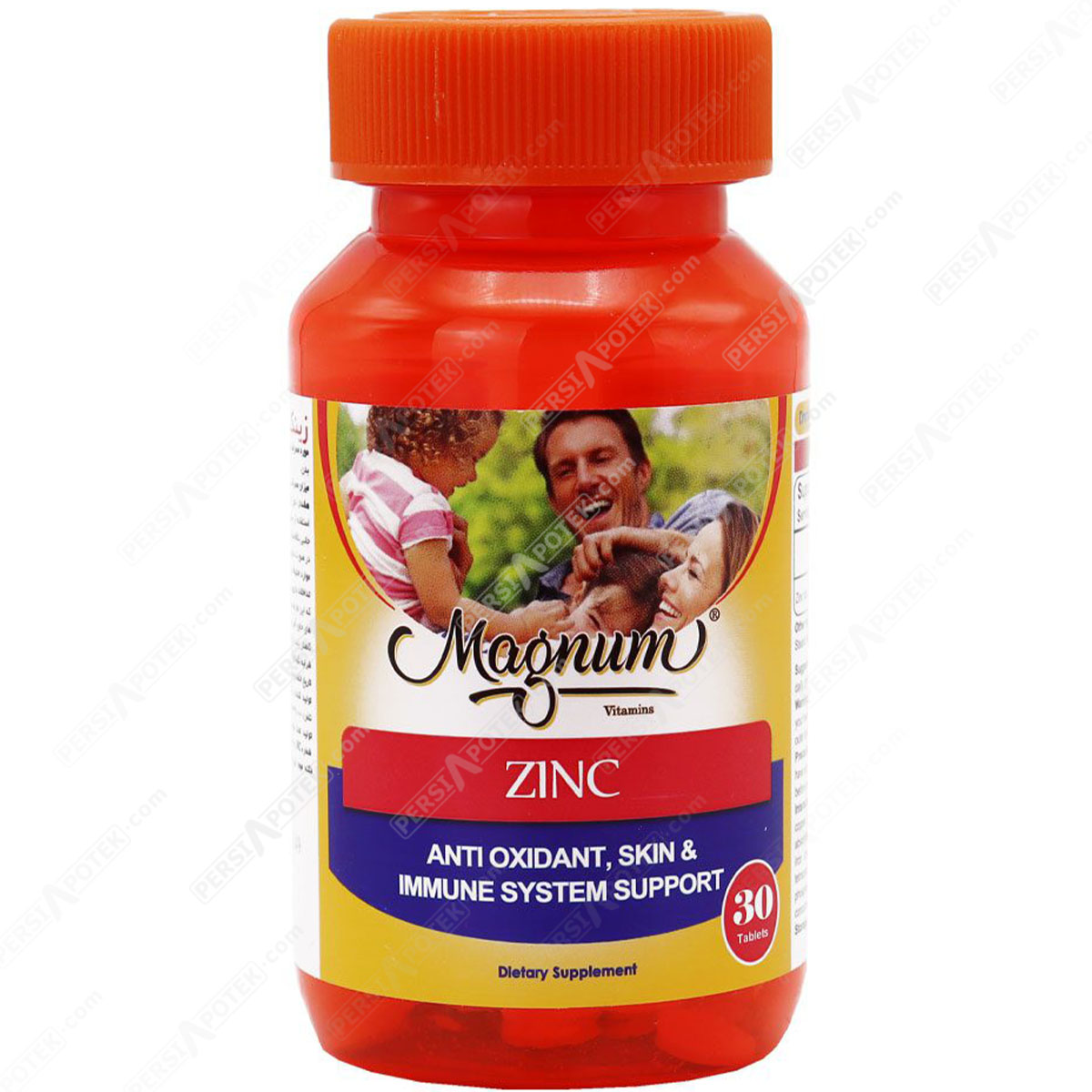 قرص زینک با برند مگنوم ویتامینز آمریکا، یک مکمل تک جزئی است که با ملح زینک گلایسینات و میزان 22 میلی گرم المنتال این ماده معدنی، فرموله شده است تا برای تامین روی در کسانی که به دلایل مختلف نیاز به مکمل یاری با زینک دارند، مورد استفاده قرار گیرد.