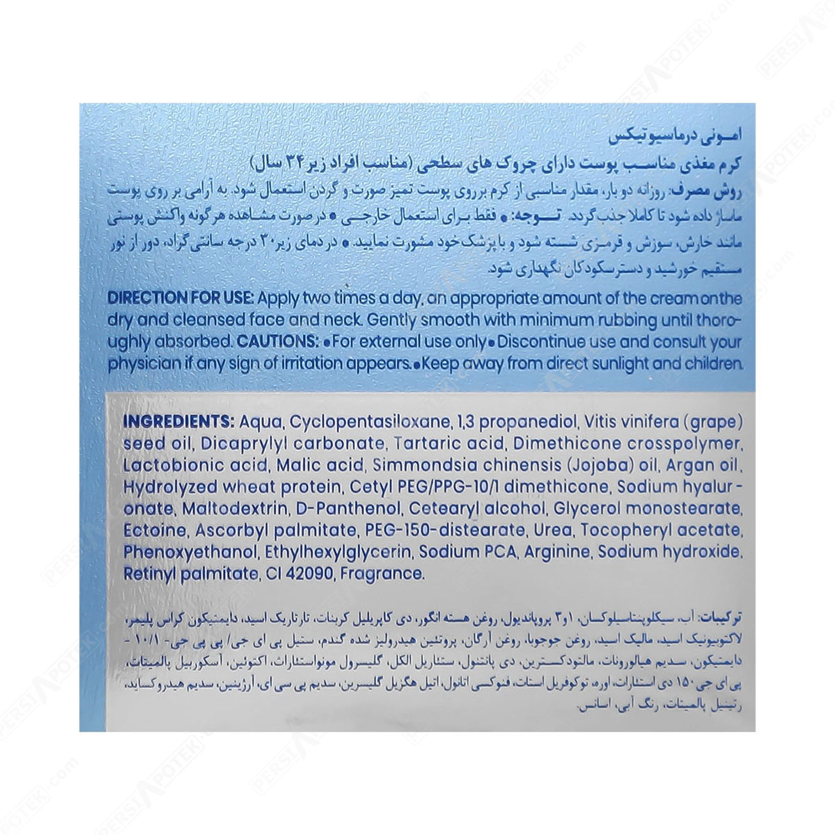 مشخصات فنی امونی کرم مغذی و ضد چروک