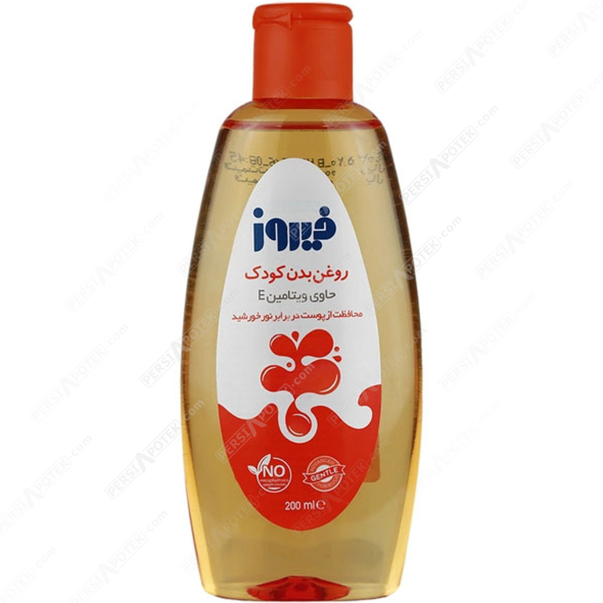 روغن بچه حاوی ویتامین E فیروز جهت محافظت پوست نازک و حساس کودکان در برابر اشعه های مضر نور خورشید در قالب بطری های اسپری دار 200 میلی لیتری طراحی شده است. ویتامین E موجود در این محصول با خاصیت آنتی اکسیدانی قوی، در مهار رادیکالهای آزاد و جلوگیری از آسیب آنها به به پوست کودکان موثر است. روغن بچه حاوی ویتامین E فیروز در مواردی نظیر تعویض پوشک کودکان، بعد از حمام و قبل خواب و همچنین به هنگام ماساژ بدن کودکان نیز کاربرد دارد و با ایجاد یک لایه سطحی محافظ روی سطح پوست، از خشک شدن آن جلوگیری نموده و موجب افزایش شادابی و درخشندگی پوست می شود. روغن بچه فیروز حاوی ویتامین E همچنین برای مصارف بزرگسالان بعد از (حمام، اصلاح و شنا)، جهت ماساژ پوست و برای آفتاب گرفتن در کنار دریا و استخر (به منظور برنزه کردن) قابل استفاده است.