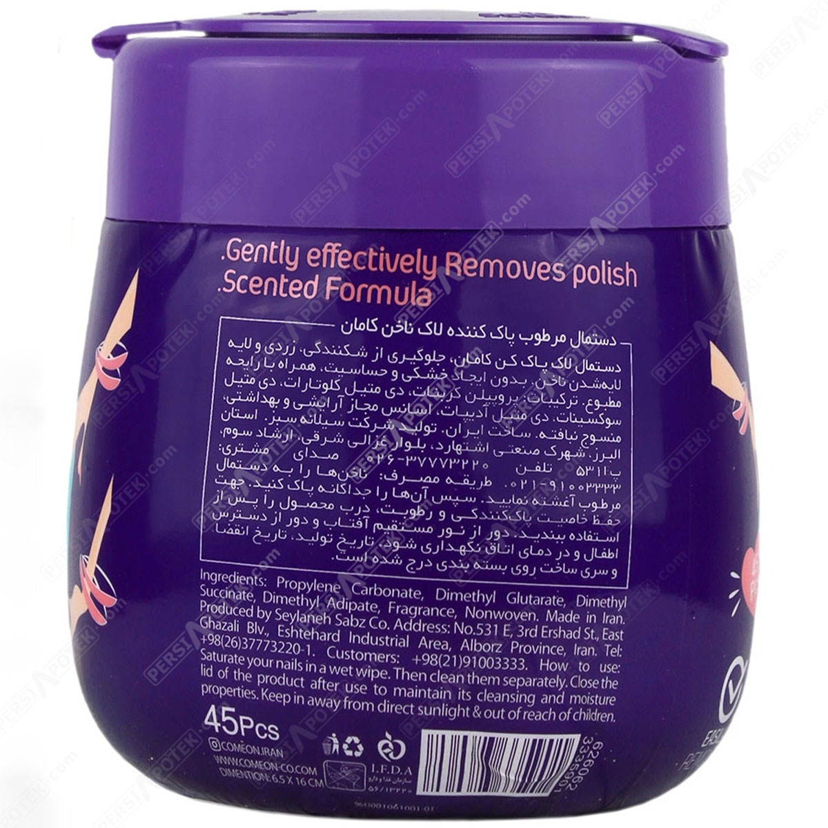 ترکیبات دستمال مرطوب لاک پاک کن قوطی کامان: