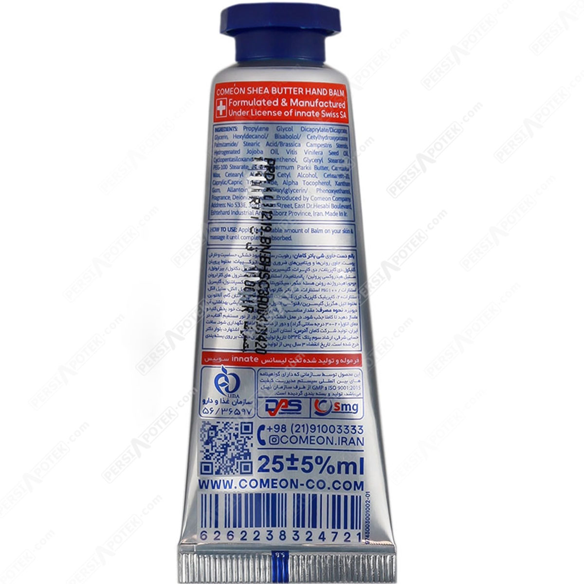 بالم دست کامان حاوی شی باتر در بستهبندی کوچک و کاربردی 25 میلیلیتری، بهترین همراه برای مراقبت روزانه از پوست خشک دست به شمار می رود که ضمن حفظ رطوبت، التیامبخش و ترمیمکننده بوده و احساس لطافت و نرمی بینظیری را برایتان به ارمغان میآورد.