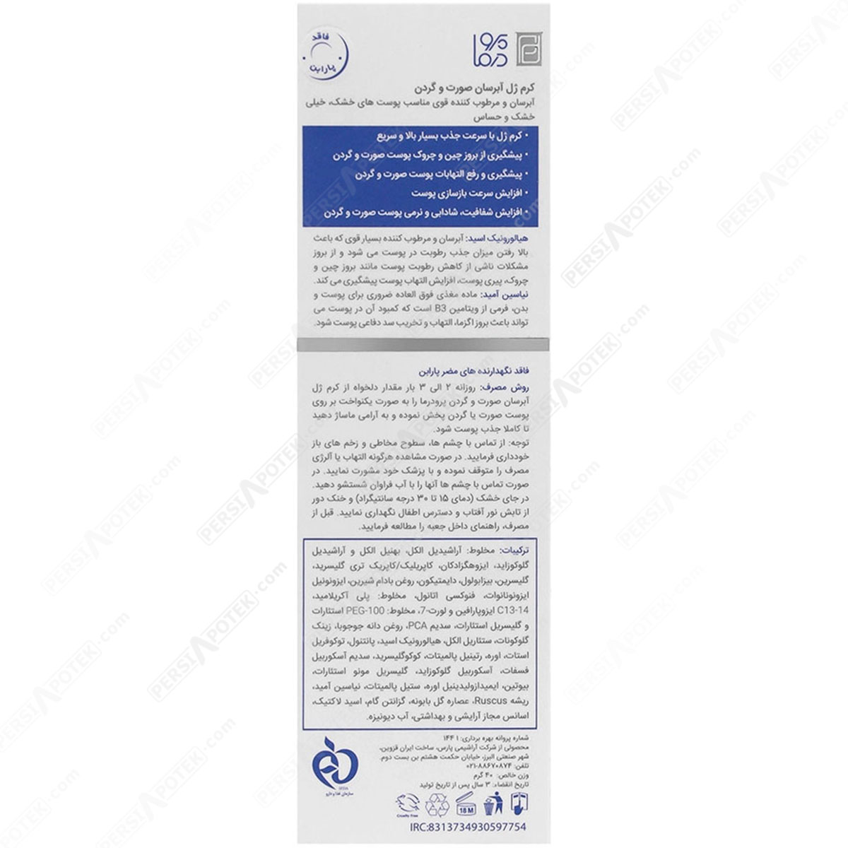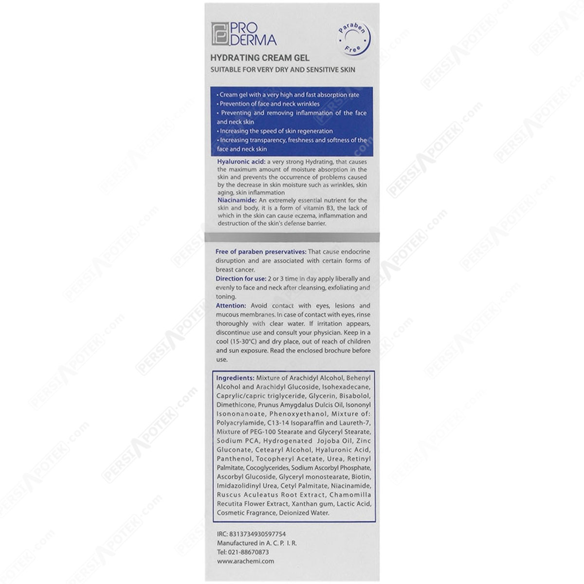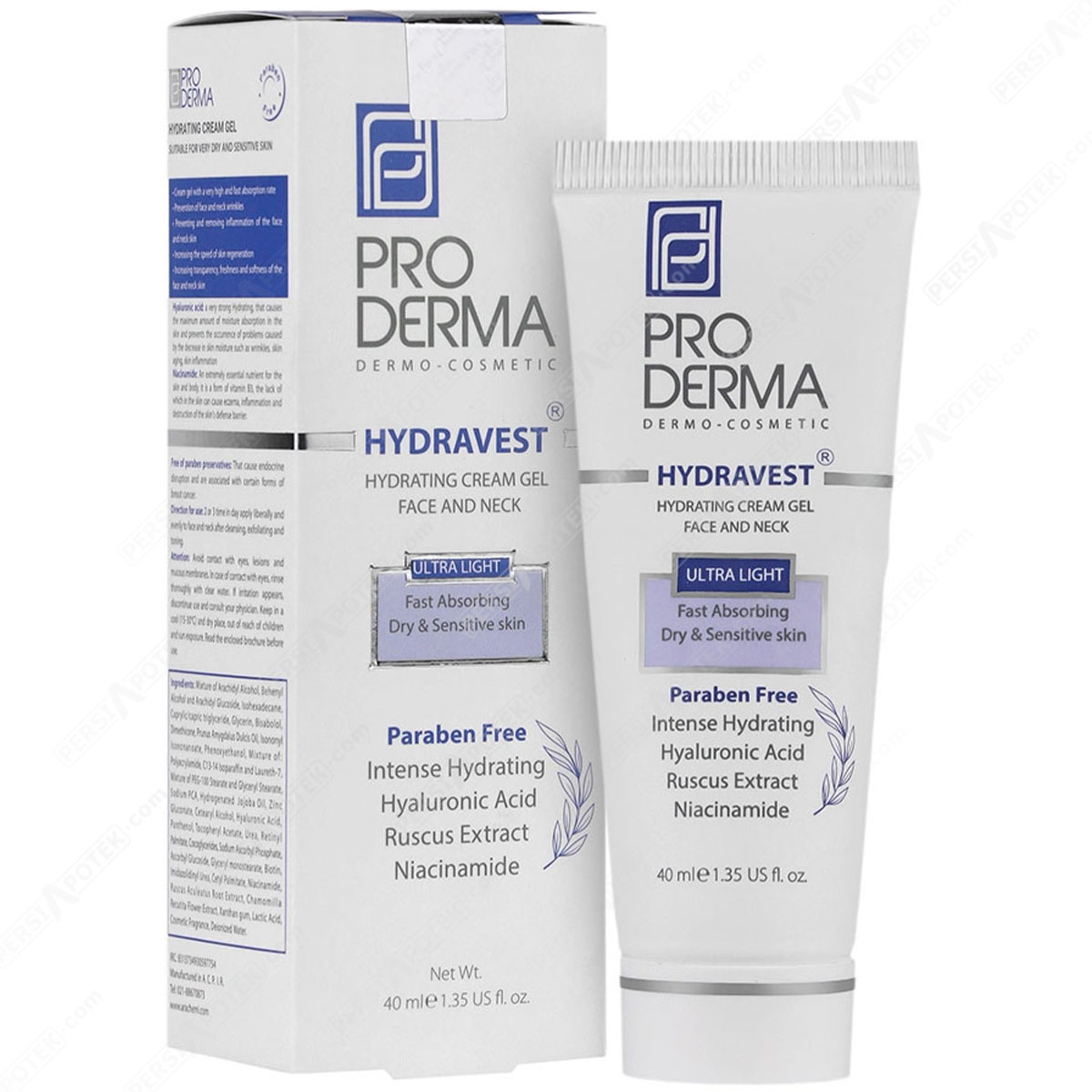 مشخصات فنی پرودرما کرم ژل آبرسان هیدرا وست