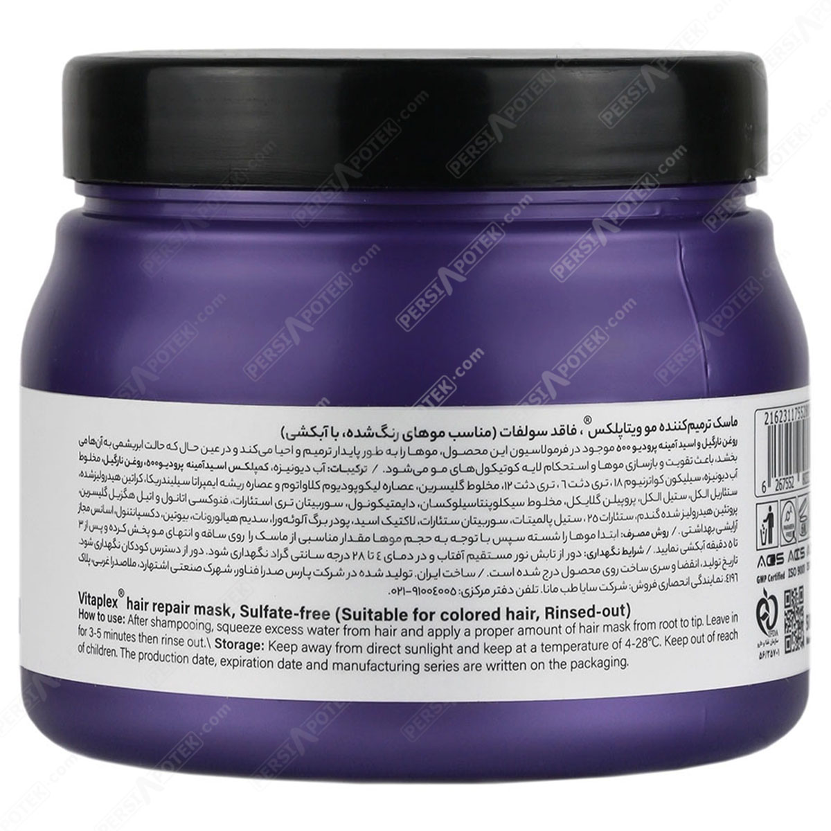 مشخصات فنی ویتاپلکس ماسک ترمیم کننده موهای رنگ شده