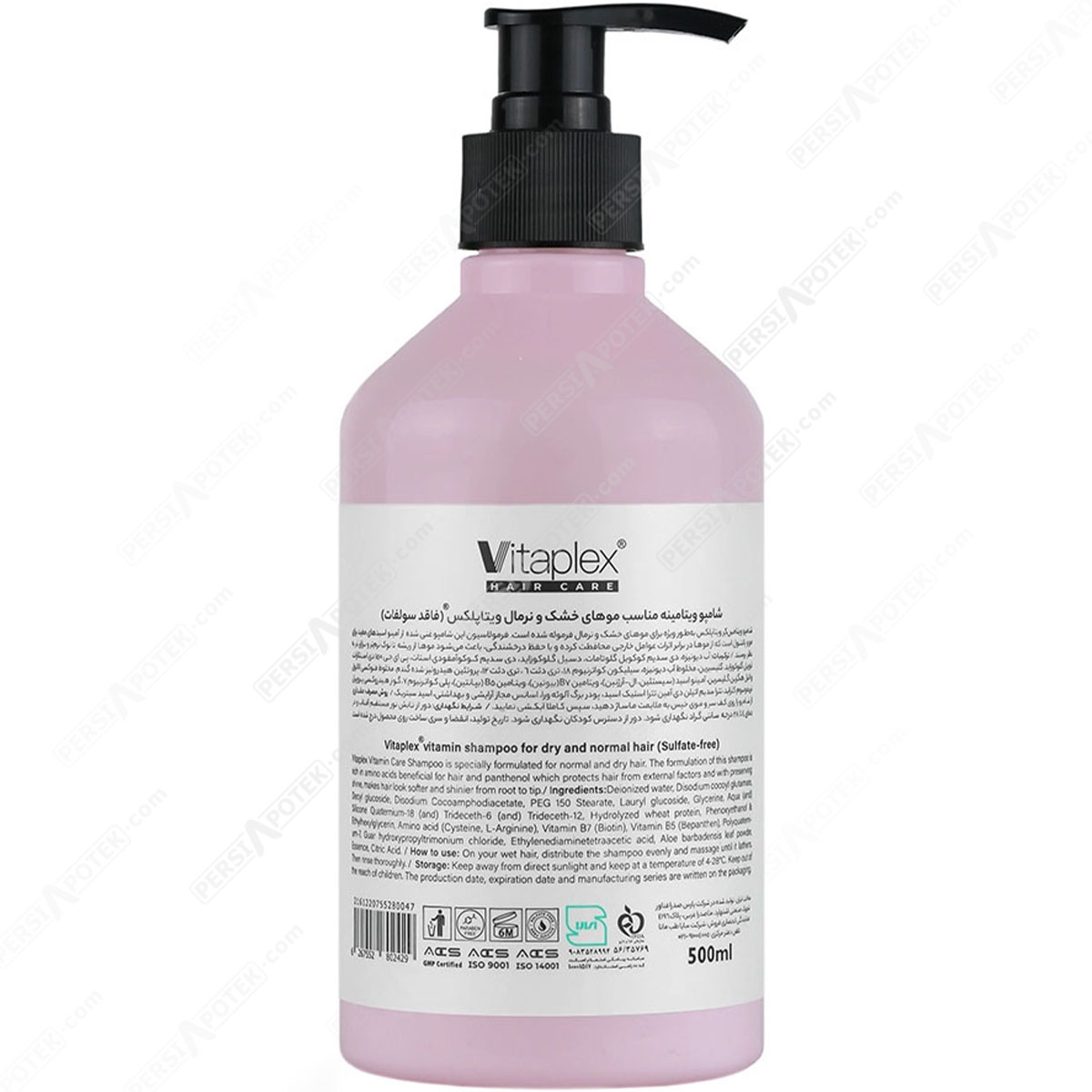 مشخصات فنی ویتاپلکس شامپو ویتامینه موی خشک