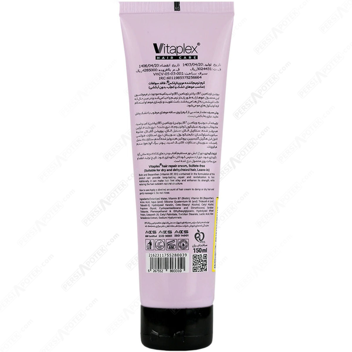 مشخصات فنی ویتاپلکس کرم ویتامینه و ترمیم کننده مو