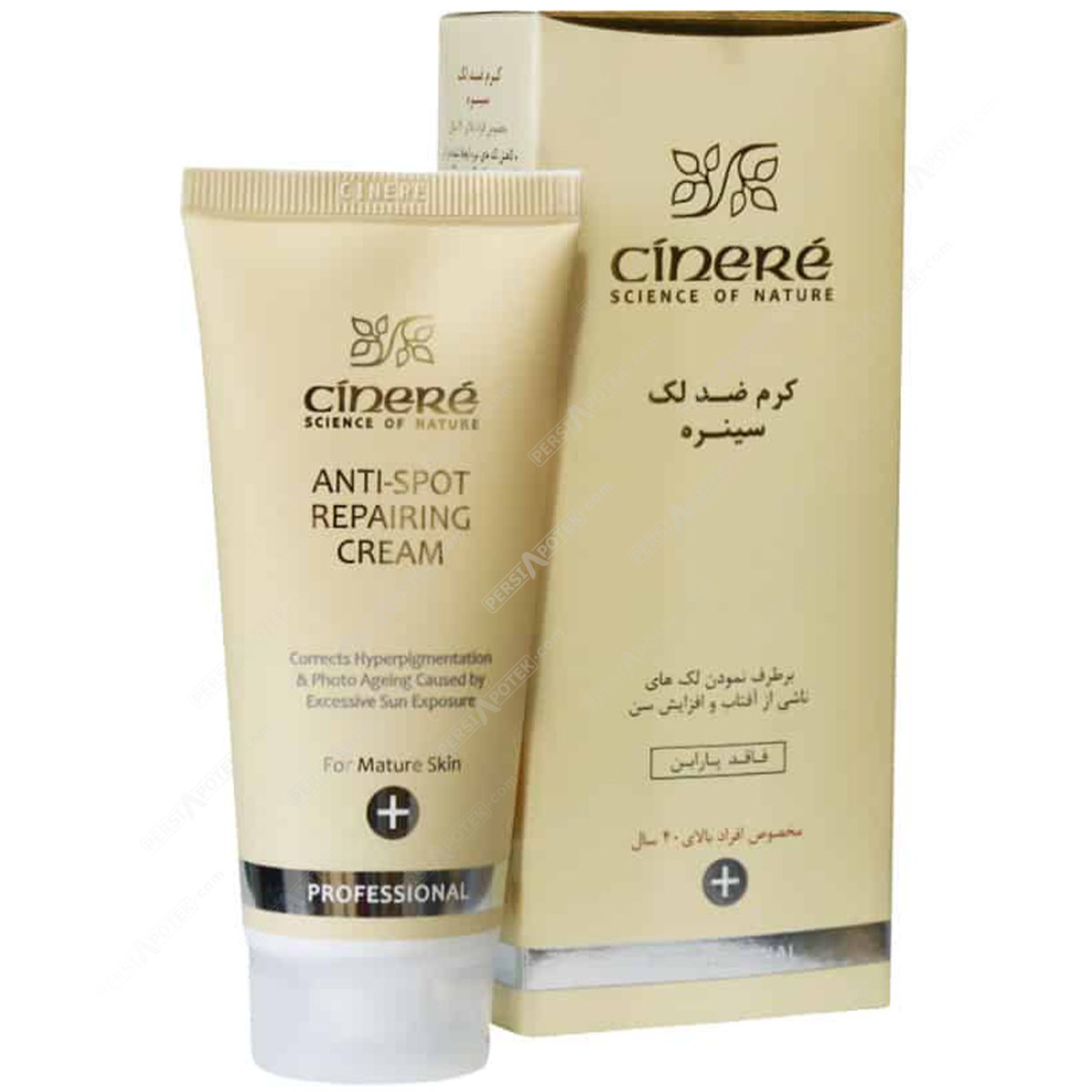 کرم ضد لک سینره مجموعه ای از مواد روشن کننده گیاهی است که با مکانیزم های گوناگون عمل نموده و ظاهر لک های پوستی را به سرعت بهبود می بخشند. استفاده از فرم لیپوزومی مواد در این فرآورده، نفوذ و جذب آن به لایه های زیرین پوست را امکان پذیر می سازد و اثر آن را افزایش می دهد. مواد موثره موجود در این کرم علاوه بر مهار آنزیم تیروزیناز و کاهش تولید ملانین با اثرات آنتی اکسیدانی قوی خود قادرند از اکسیداسیون چربی ها، پروتیین و ایجاد رنگدانه های Lipofuscin در سلولهای پوست جلوگیری کنند. طی استفاده از این محصول برخلاف سایر محصولات مشابه نیازی به استفاده از محصول فقط بر روی لک ها وجود ندارد. زیرا با توجه به مکانیزم های خاص آن در صورت استفاده بر روی تمام پوست صورت یا دست، اثر کم رنگ کردن رنگدانه های پوست به طور اختصاصی بر روی لک ها انجام می گیرد و تفاوت رنگ لکه ها با مناطق کناری به مرور کاهش می یابد.